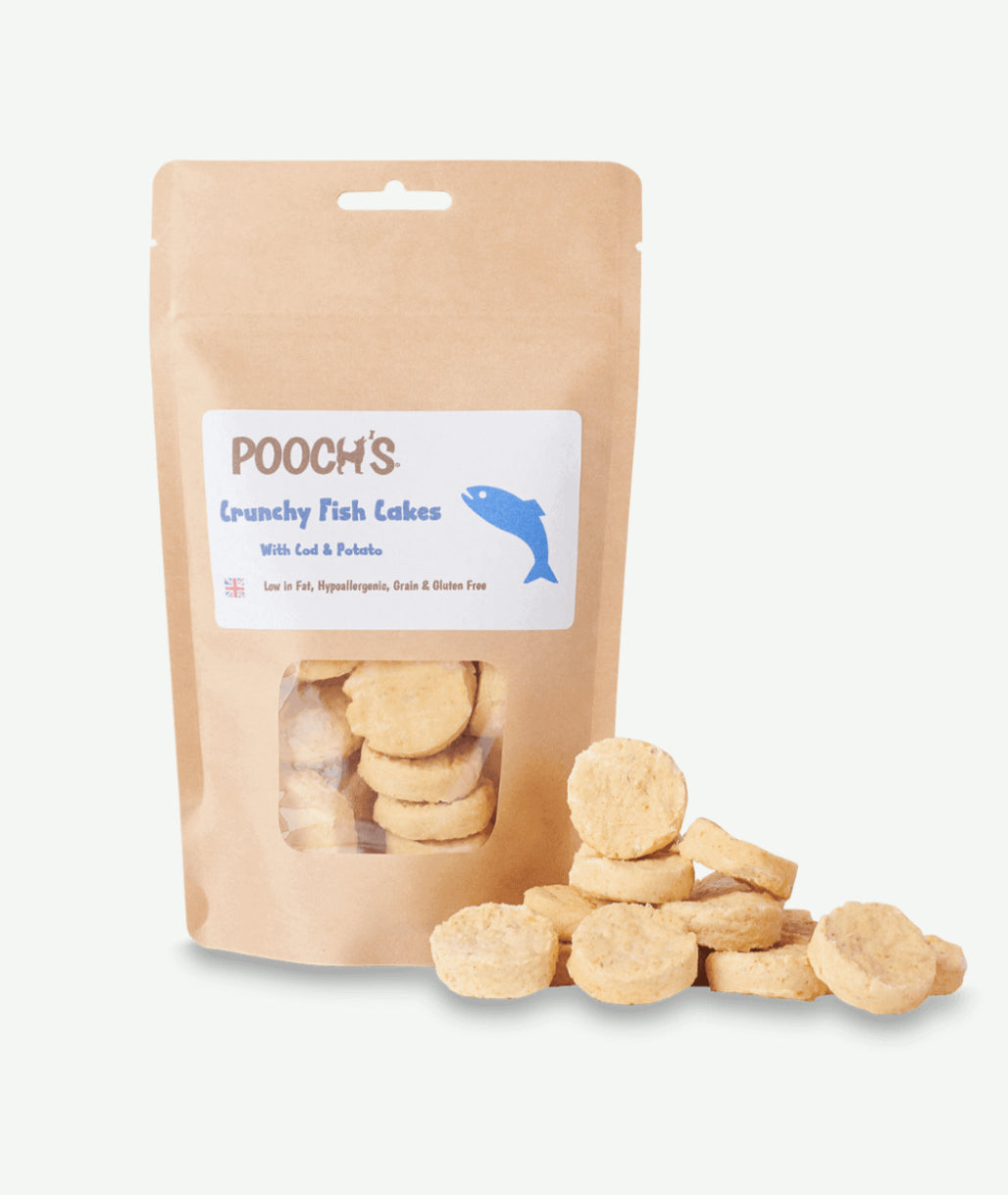 These Fish Cake biscuits are made from Cod and potato. They are a great source of Omega 3, important for keeping your dog’s skin, joints and heart-healthy.